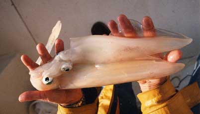 Bajo, unas cuantas fotos de la pesca de ese día. Normalmente , si hay marcas sospechosas de calamares por encima del fondo, utilizamos terminales en los que, el de mas arriba, es un señuelo para ellos: un squid hunter o "pajarito". No estorba y puede haber sorpresas agradables como las que demuestran dos de las imágenes. Ese dia se prendieron de nuestros señuelos , una vez una sepia y otra un calamar de kilo y medio y 90 cm de largo total . Pulse imagen para ampliar Vea mas información sobre pesca del calamar |