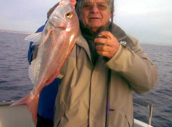 | En el mes de enero tradicionalmente se celebra en Torrevieja un popular y disputado Concurso selectivo de pagel. De aquí que en los fimes de semana previos, los aficionados se dedican a "tantear" sus caladeros favoritos de pagel, con vista a esa competición . Asi hicimos nosotros en esta ocasión, a bordo de nuevo del Avizor. De ese día son las fotos que muestro a continuación. |