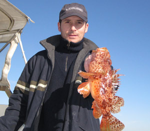 El 27 de diciembre aprovechando un día de bonanza , pero eso sí, con temperatura de 5 a 6 grados a la orilla del mar, hicimos a bordo del Chambel dos una buena pesca a unas 9 millas al SE de Torrevieja. Pescamos en 40 m. de sonda. Como el terreno ya conocido de otras veces, era de casacajo y fango y se veían manchas por encima del piso sugerentes de calamares, pescamos al volantín incluyendo cada uno, un "pajarito" en la parte alta del aparejo, unido al mismo también con una bolita y un cm de sedal. Los cebos que utilizamos para el pagel y vidriadas fueron ermitaño y calamar congelados. Logramos una gallineta, un puñado de pagelones de 300 a 500 gr, y vidriadas alguna de las cuales se acercaba al medio kilo. También Manolo levantó un par de calamares que a estas fechas tienen ya el medio kilo
