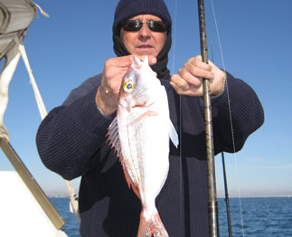A mediados de diciembre aceptando una amable invitación de L. Llor, patrón del Gland, hicimos una escapada a por pageles, pese a que por radio habíamos sabido que aún se estaban cogiendo calamares de buen tamaño y que otros habían conseguido algunas buenas pesqueras de doradas escapadas de piscifactoría .