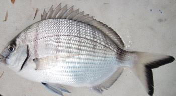 Sargo común ( diplodus sargus), llamado por su color, en ingles, white bream o sargo blanco