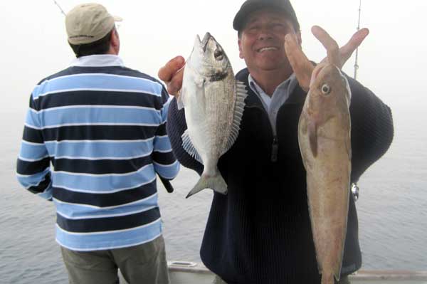 César con una dorada y otra de las brótolas, de este fondo poco aparatoso en desniveles, pero rico en vida