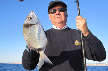 , visitamos un caladero en el que el año pasado, por estas fechas, hicimos una buena pesquera de chopas. La intuición del patrón, nos proporcionó un par de horas de diversión y una bonita pesquera de chopas. Lástima que las bogas, (eso si de tamaño de 6 a 8 un kilo) que hicieron acto de presencia al poco tiempo, nos molestaran con