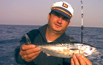 Apesar de esto, al curri aún se pueden lograr algunas bacoretas, cuyo crecimiento es por lo que se experimenta, mas bien lento- comparadas con lampugas o atunes-ya que su peso está todavía por debajo del medio kilo en los ejemplares nacidos esta primavera, como estos que muestra nuestro amigo Grau a bordo de su barco, que entraron a rapala y cucharilla irisada. En cambio las lampugas sobrepasan algunas fácilmente el kilo. |