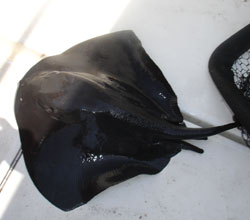El tiempo, a finales de agosto, nos ha dejado unos pocos días de bonanza que algunos barcos han aprovechado para salir a caladeros lejanos, como el planazo o gallinero, distantes de Torrevieja entre 24 y 27 millas, donde aún sepueden hacer algunas pesqueras entretenidas como la que reflejo en las imágenes de mas abajo, tomadas a bordo de la embarcación Pataty, Ese día gozamos de una excelente jornada de mar rica en fuertes emociones. En efecto: Dimos con un pesquero situado a 239 m de sonda, poblado de vida marina, en el cual, peces mostruosos, que apenas pudimos ganchear , rompieron en multitud de ocasiones nuestros aparejos. Logramos congrios entre 15 y 41 kilo, pero las mejores y mas grandes piezas, fueron, quizás , como a menudo sucede, las que se fueron. Quizás por ello la pesca de pollos y besugos fue mas bien escasa, ya que los "bichos" que teníamos bajo, una y otra vez atacaban nuestros cebos. A continuación, unas cuantas imágenes que puede ampliar pulsando sobre ellas . |