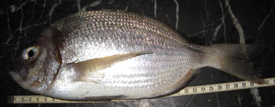 | Peso y talla de esta vidriada. El récord controlado del club está en una vidriada con 630 gr de peso y una talla de 32 cm . Ésta pesó 590 gr. y midió 32 cm Según Bauchot y Pras, en el Mediterráneo , es la talla máxima de la especie . Para otros autores, podria alcanzar los 35 a 40 cm |