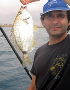 Una pieza poco común en la pesca desde embarcación y de las que conseguimos unos cuantos emeplares de buen tamaño que hacína una defensa endiablada para su tamaño |