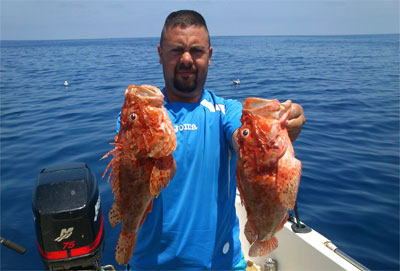 Dos buenos cabrachos.pescados el 16 de Junio a bordo del SEÑORITO |