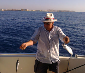 cumpleaños del patrón y qué mejor manera de celebrarlo, para un buen aficionado, que pasando unas horas en el mar.Eso sí a las 12 nos retiramos para cumplir -el y yo-con la familia.