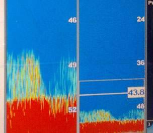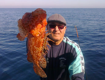 Inicialmente rastreamos los pageles en uno de nuestros enclaves favoritos.Al no gustarnos la imagen en la sonda, nos fuimos a probar alguna piedra del carrilón al 160º de Torrevieja en 52 m. de sonda. Las pocas horas que estuvimos alla nos dieron unas cuantas piezas buenas, cabracho, chopas y pargos, mólleras, una buena corva de cerca del kilo y un buen puñado de grandes serranos. Las imágenes que acompañan fueron de ese día |