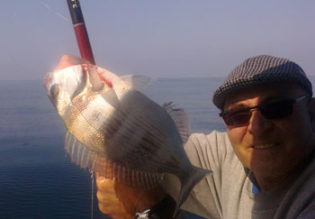 Bajo, Pardines, nuestro compañero de pesca con una chopa y un buen pagel de medio kilo.