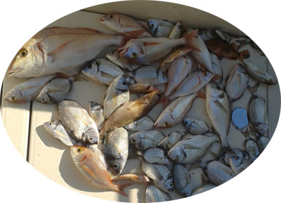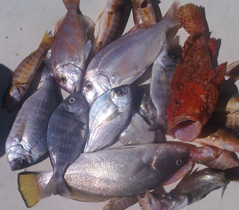 Pageles vidriadas y alguna dorada y brótola .Foto enviada por J.M.Menargues, pescando con Melgarejo
