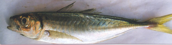 ) Pulse imagen para ver el aspecto del jurel negro ( Trachurus tracurus) que habita de ordinario a mas fondo y que puede alcanzar el kilo y 50 cm |