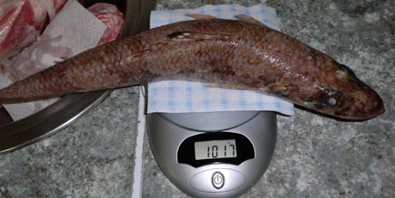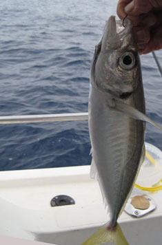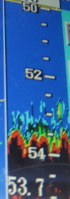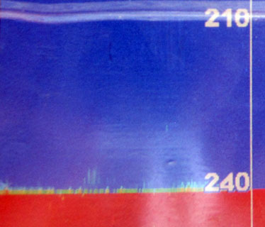 Desafortunadamente, nuestra alegría duró poco. Estábamos en un laderón de 240 m. de sonda (arriba hay 220 m.) y el ancla fué garreando poco a poco hacia abajo, sacándonos del sitio.Pese a nuevas "enmendás", el pescado que encontramos luego fueron sobretodo, jureles negros, "pollos" y besugo de menos categoría .