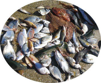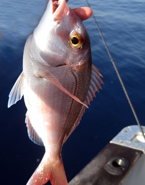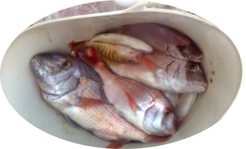 | Bajo, las especies mas comunes en estos fondos , besugos, pollos y jureles