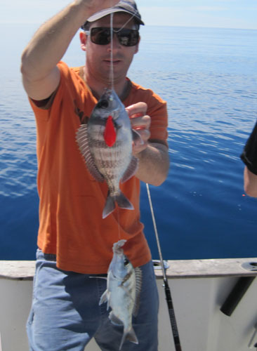 Otro doblete de besugos de mas de medio kilo, subidos con caña y carrete de mano , ¡ desde 240 m. de sonda....