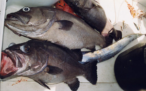 Brotola de 3,300 Kg y 60 cm. conseguida en estas piedras
