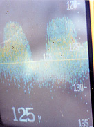 desde los 125 a 120 m. de sonda. Las manchas azuladas en 122 m.