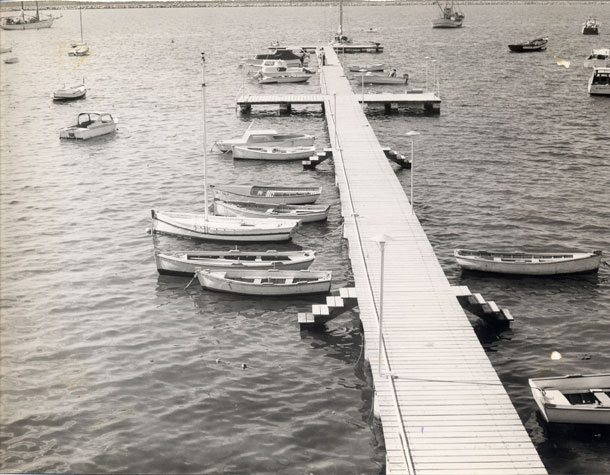 Primer muelle- pasarela en 1969. Solo amarraban unos pocos botes a remo o con motor fuera borda