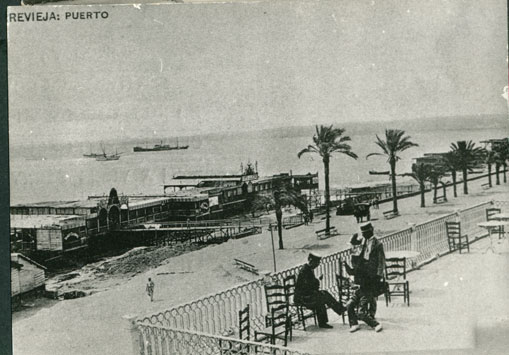 Balnearios que había frente al Casino llamado primitivamente C. Numancia. Existe desde 1900 A su lado estaba desde entonces el Café España En esta playa llamada de Vista Alegre había 4 balnearios El de "Vista Alegre" el "De la Rosa (de Salvador el Pato) y dos mas a la derecha (tapados en parte por las palmeras) "el de la Unión " y el "de la Paz" Foto tomada desdela terraza del Casino.Comienzos del siglo XX |