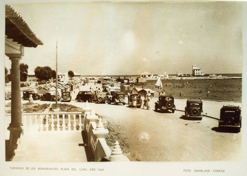 Playa del Cura. 1940. Al fondo Balneario. Mas a la derecha edificio de D. Aurelio en la punta Margal