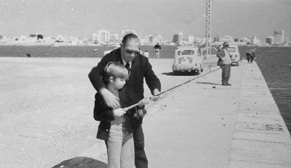 Andres Javaloy Lizón enseñando a pescar a uno de sus nietos