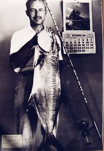 Ramón Genovés, otro gran pescador de los años 1950 a 1970 . Con un palometón de 12 kg pescado en 1960, utiilizando una de las primeras cañas "de lanzar"(así se llamaban entonces), que hubo en Torrevieja