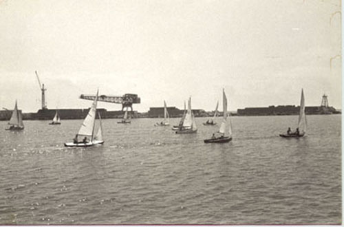 Una delas primeras regatas que organizó el RCN de Torrevieja. Al fondo se levanta un paredón en una zona rota del puerto