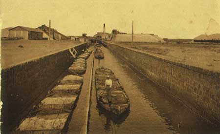 Transporte de la sal desde la laguna hasta la factoría donde se cargaba en vagonetas que la llevaban al muelle de las Eras