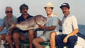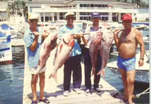 A las 7 y media de la mañana ya llevábamos pues, dos preciosos ejemplares a bordo. Estábamos locos de alegría y con la esperanza de conseguir alguna más, ya que en la sonda, a unos 20 metros de la superficie del mar, se veían, de vez en cuando, algunas marcas intensas que no eran de los habituales besugos o tres colas. Eran “ellas” por supuesto. Aún Manolo tuvo otra emoción. Esta vez fue un tirón brusco y corto distinto de los anteriores. Clavó rápidamente y empezó a cobrar. Le costó mucho despegarlo del fondo, pero luego, tras cortas huidas hacia la profundidad, poco a poco fue elevándola para que, en unos diez minutos, tener una espectacular sama al alcance del gancho.