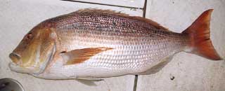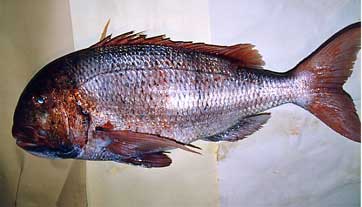 ![]() Sama o Dentex gibosus hembra. Los machos tienen la joroba nucal mucho mas grande |