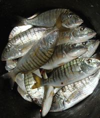 pesca.En esta ocasión a bordo del "Avizor" acompañé a uno de los especialistas en el tema. Lo hicimos pescando a la "ronsa " o deriva.Mi impresión es que este año parece haber menos que otros años aunque de todos modos pescamos unos 4 klilos en unas 3 horas en fondos arenosos que oscilaron entre los 20 y los 14 metros de sonda en sus lugares querenciosos . Sobre su técnica de pesca vea otra pagina de esta web