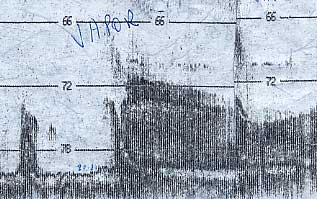 Habíamos elegido cuidadosamente el día para ir allá. El pecio al que nos dirigíamos, está hundido a 80 metros de profundidad, a unas 24 millas de Torrevieja nuestro puerto base. Dada su situación en el fondo del mar-dirección E-O- y la red que en parte lo cubre, habíamos comprobado otras veces, que si no había excesiva corriente, el viento ideal para pescarlo era cuando soplase un E flojo que nos permitiría pescar sobre una zona del barco hundido mas rica en vida animal. Porque como conocen los que practican este tipo de pesca, no en todas las partes de un pecio se hacen buenas pesqueras. Así, cuando estamos pescando en una zona del naufragio con imagen ecográfica más lisa, (que corresponde probablememente al casco tumbado del pecio), si bien tenemos ahí menos enganches, de ordinario se pesca menos. En cambio en la mas accidentada, la correspondiente a estructuras de la cubierta, con cavidades o recovecos, hay mucha más posiblidad de pescar- y de enrocar, claro |