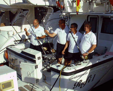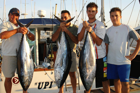 El Rufi Primero del R.C.N. de Torrevieja con su tripulación al completo: Pico, Boti, Luis y el patrón Miguel, consiguieron el atún mayor |