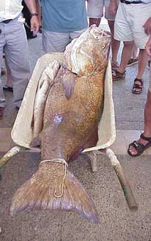![]() Gigantesca corvina pescada en Puerto de Santa María, de cerca de 50 kg.. Foto tomada de Pesca a Bordo |