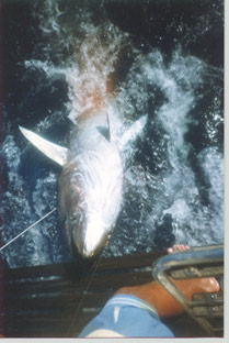 golpe, el atún, a sus 15 o 20 nudos de velocidad, nos sacó