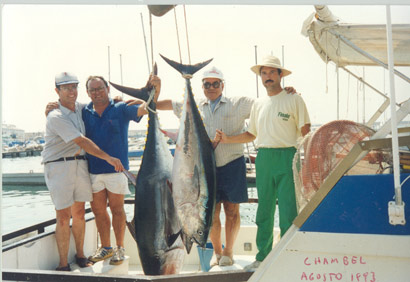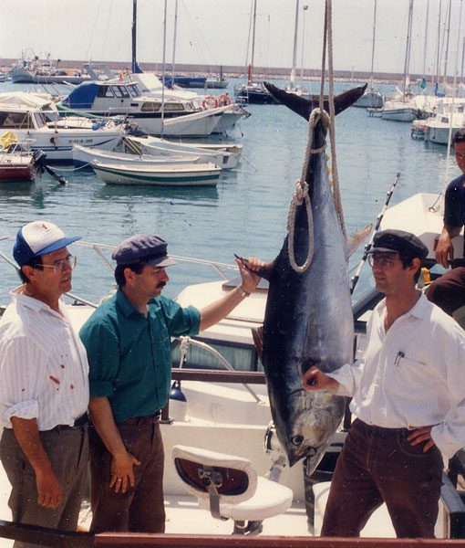 Desde hacía dos años las embarcaciones Chambel y La Ilusión, habían intentado la pesca deportiva del atún pese a la opinión generalizada de que estas no eran las aguas adecuadas y que eso era más al norte, en Castellón o Gandía. Sin embargo tuvimos siempre presente lo que habían logrado antaño barcos como el “Faraón” o “Los Valentines”y además que en esos últimos años las traíñas capturaban de vez en cuando alguno. Unos días después de capturar el Chambel su primer atún, José en “La Ilusión” capturaba ese precioso atún y unos poco tiempo después uno descomunal de 340 Kilos que aún es récord en el Club. A la vista de nuestras capturas y de otras a bordo de las traíñas, otros barcos deportivos con mejor o peor suerte, empezaron a intentarlo y lo mismo lo hicieron barcos profesionales dedicados a artes menores. Ese año el total de los atunes pescados a anzuelo desembarcados en los muelles del Club y en el de la Cofradía ascendió a 38, número que aumentó extraordinariamente en el año siguiente