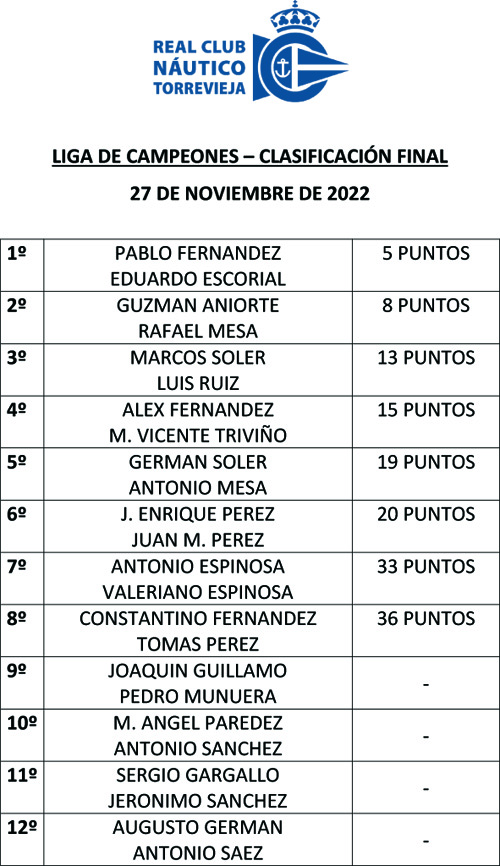 El 27 de noviembre de 2022 tuvo lugar esta 5ª manga de la Liga de Campeones-Participaron, 11 equipos de dos pescadores cada uno. La pesca no fue muy abundante ya que presentaron a control 65 k de pescado a un promedio por pescador de 3 kg de pescado. Bajo unas cuantas imágenes de está 5ª manga de la LIGA DE CAMPEONES. Bajo , una cuantas imágenes , cedidas por Manolo el Contramaestre, y Por Marta.