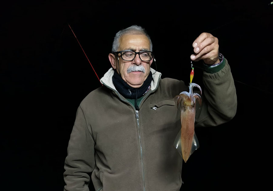 En esta época del año, muchos aficionados, al amanecer o al atardecer se dedican a la pesca del calamar.