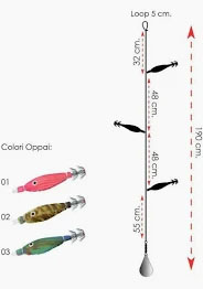 Bajo un modelo de aparejo de pesca del calamar tomado de la pagina WAVE IN