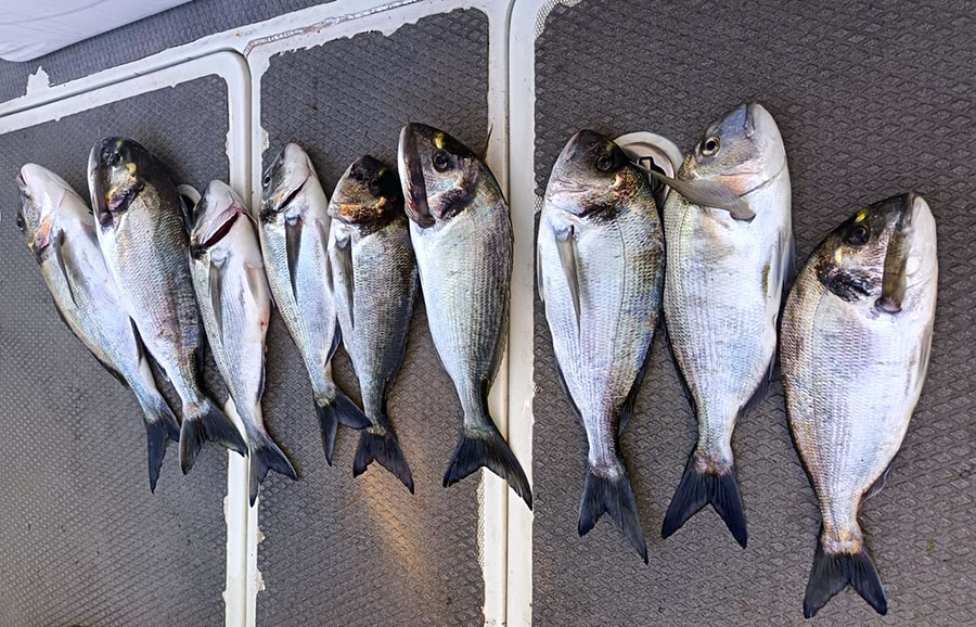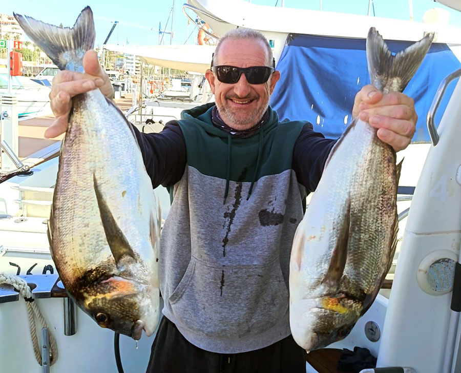 A peticion mía, mi buen amigo Angel García Arauco, me remite esta gran pesquera de doradas hecha recientemente a bordo de la embacación PEMAR, patroneada por otro gran pescador, Enrique Pérez Martínez. En portada Angel, con dos buenos ejemplares que pesaron 2´750 y 2´550.
