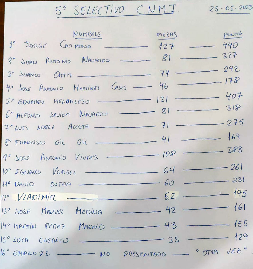 Dicho Concurso se realizó el domingo 25 de mayo de 2025 en aguas frente a C.Roig en 30 m. de sonda ( Datos proporciondo por mi buen amigo Eduardo Melgarejo.Muchas Gracias)